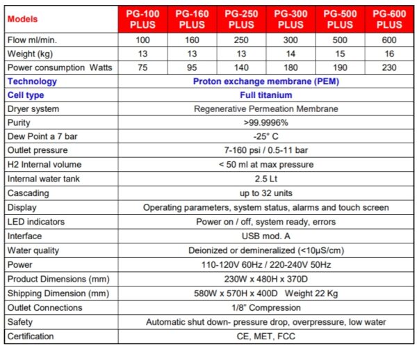 Prezzo su richiestaPG-250 PLUS VERSIONE: 250 ml/min PUREZZA: 99,9996% La serie di generatori d’idrogeno PG-H2 Plus utilizza la nuova e più recente tecnologia a membrana polimerica (PEM) per […]