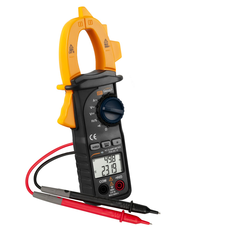 La pinza amperometrica è un dispositivo ideale per misure veloci e accurate di corrente, tensione, resistenza, capacità o frequenza. Non richiede la disconnessione delle fasi da collegare al dispositivo. Il rischio di scosse elettriche diminuisce utilizzando questo strumento, poiché non c’è contatto diretto con le linee in tensione quando si effettua una misurazione. Un’altra incredibile caratteristica è la sua funzione "SMaRT" che permette di misurare molte altre cose come la conduttanza elettrica e la frequenza in un solo colpo! Con questa funzione la pinza amperometrica imposta automaticamente la funzione di misura, ed è quindi una strumentazione ideale per scuole, centri di formazione e altri centri di insegnamento.