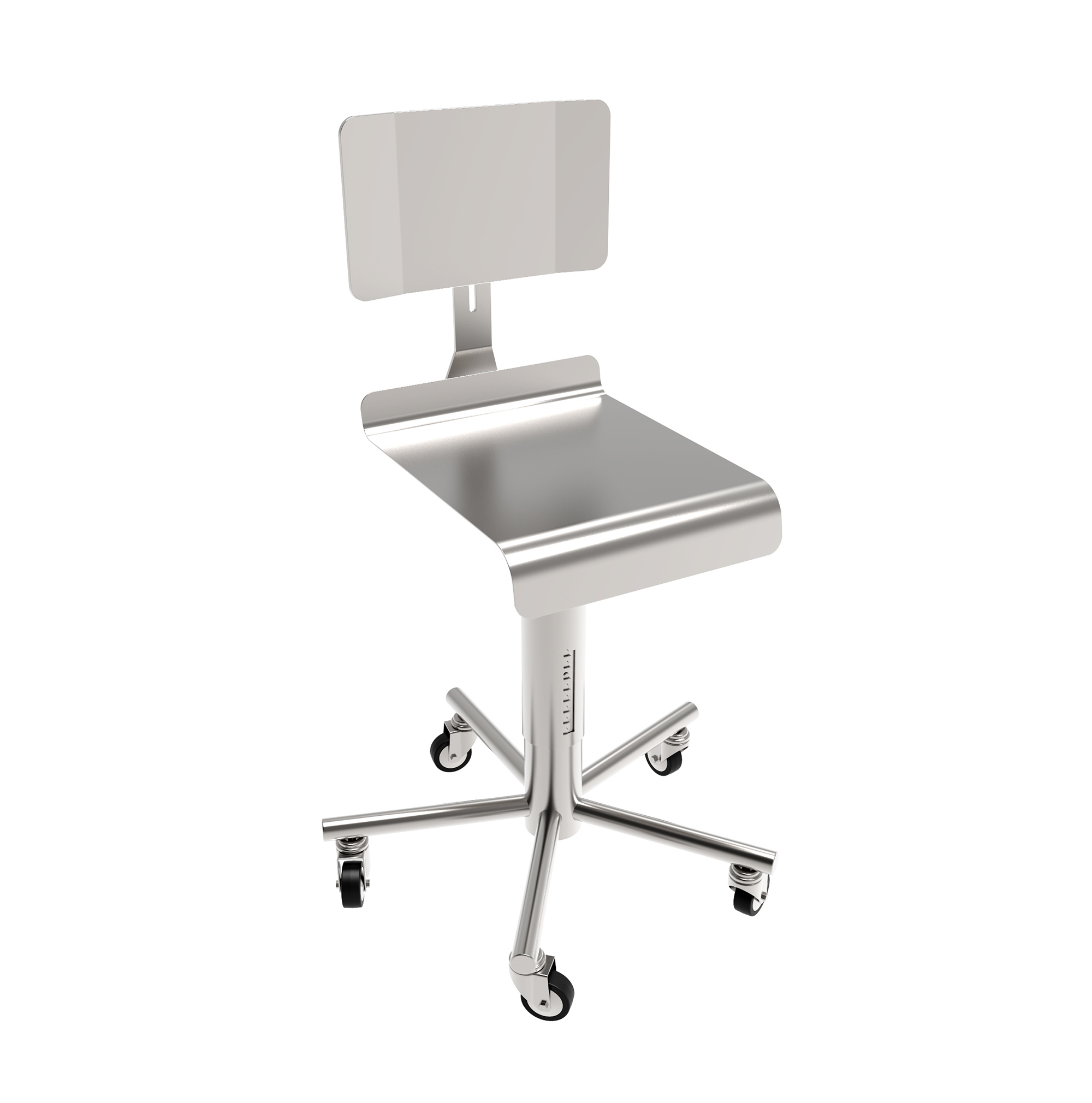 SGABELLO SU RUOTE CON SCHIENALE IN ACCIAIO INOX