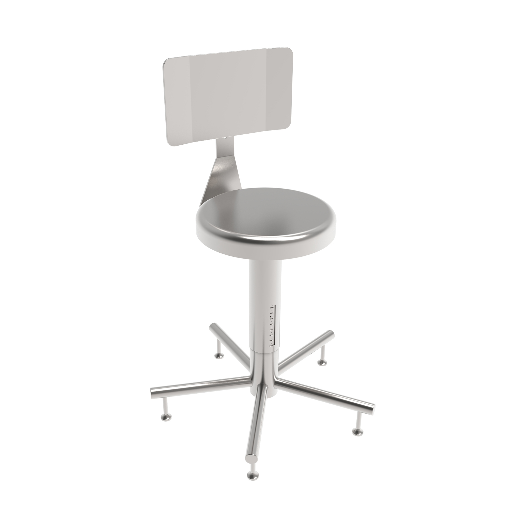 SGABELLO SU PIEDINI CON SCHIENALE IN ACCIAIO INOX