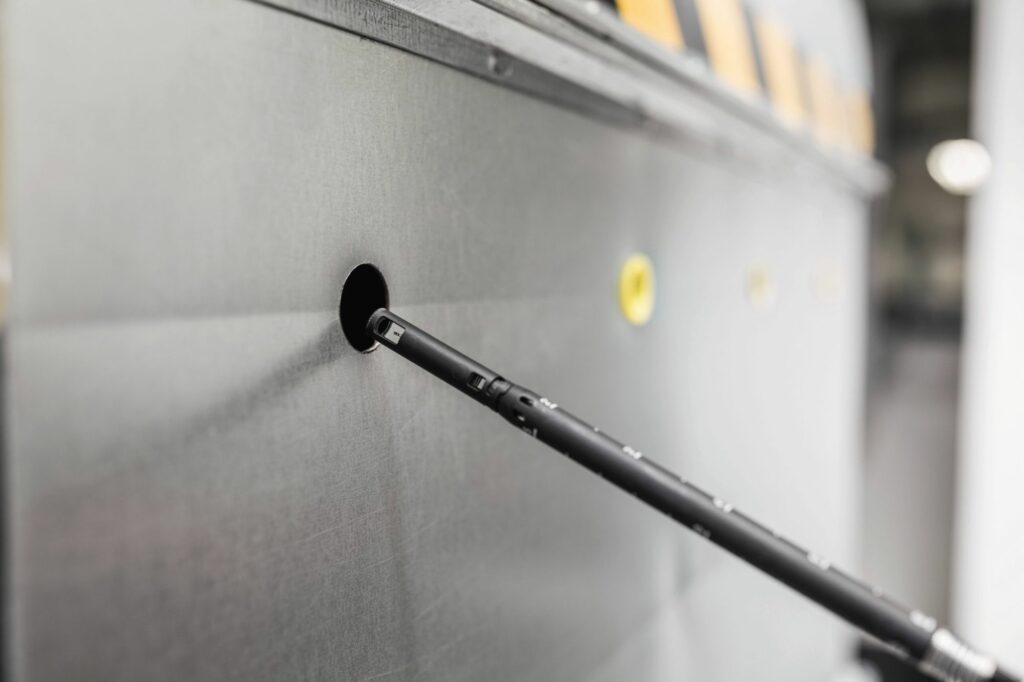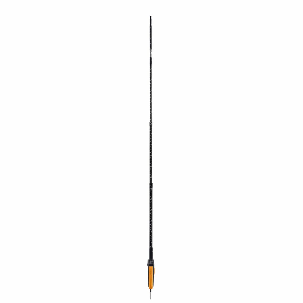 Equipaggia la tua sonda a filo caldo ad es. con la prolunga telescopica (da ordinare separatamente). Questa permette di raggiungere una lunghezza complessiva di 2 metri e quindi di misurare senza fatica anche grandi impianti di ventilazione.