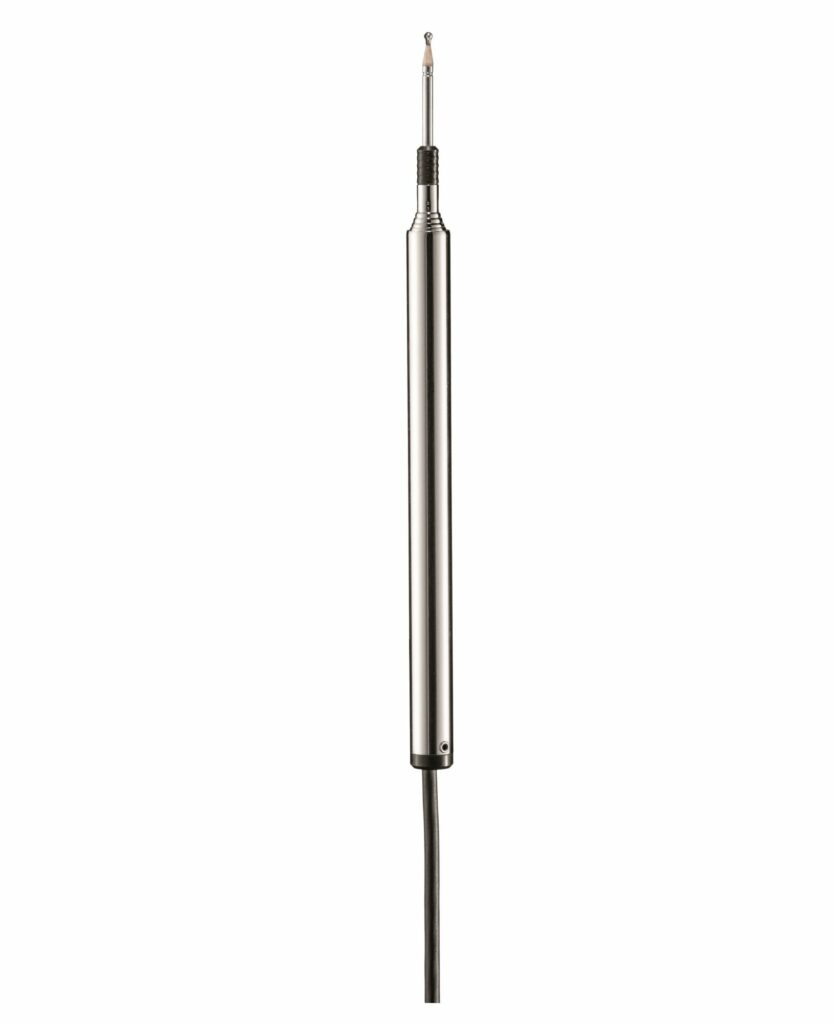 La sonda a sfera calda è dotata di un telescopio estendibile fino a una lunghezza massima di 860 mm. Con un diametro di soli 3 mm, la sonda è ideale per misurazioni in luoghi stretti e inaccessibili.